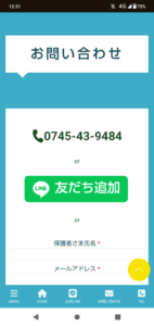 (画像はスマートフォンで閲覧した際の様子ですが、PCなどで見ていただいてもページ上部やお問合せ欄に表示されます)